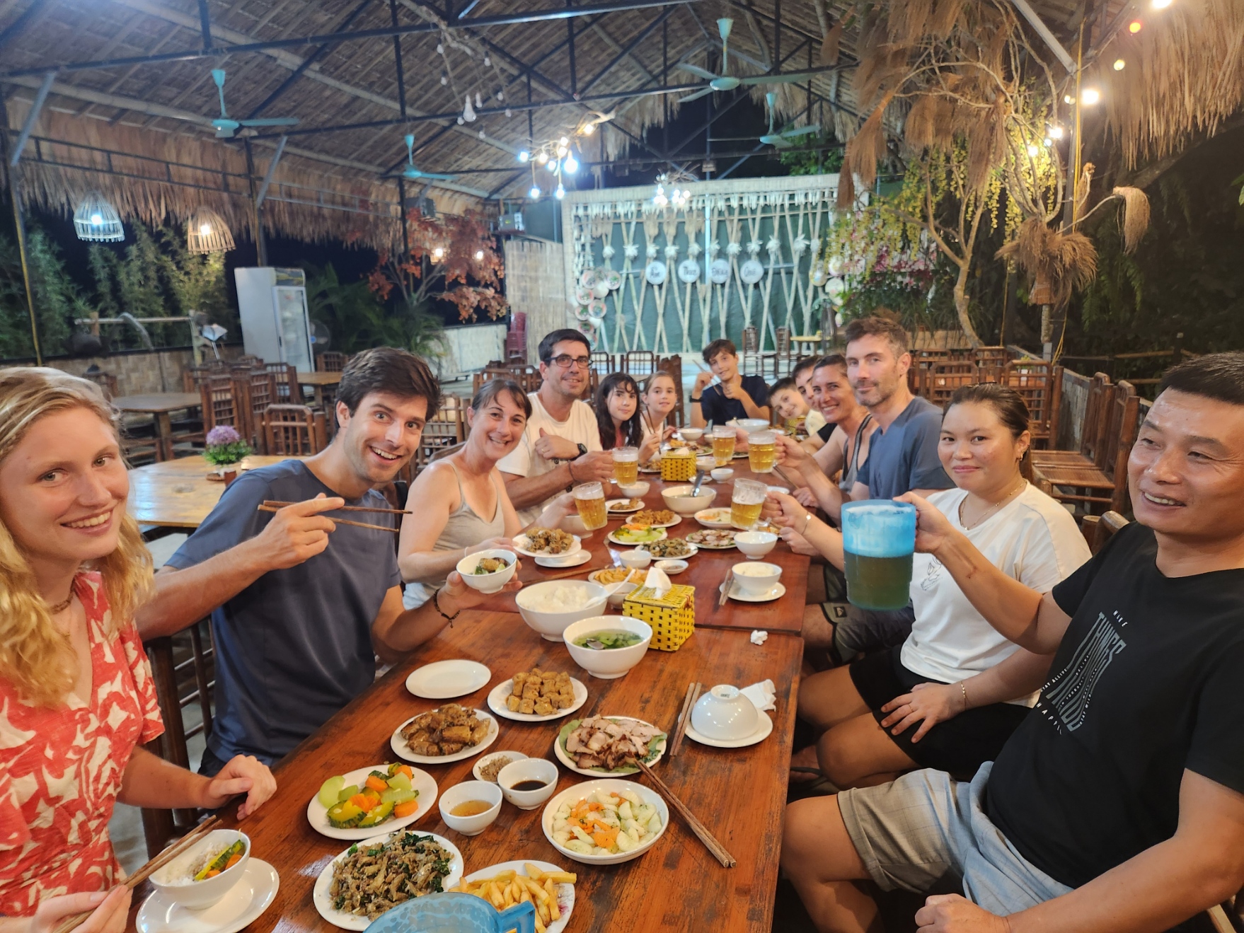 At Đồng Quê Homestay, dinner is more than just a meal — it’s a heartfelt experience shared with local families under the gentle glow of lanterns and the peaceful sounds of the countryside. Guests are invited to gather around a traditional wooden table, where delicious home-cooked dishes are served — from fragrant grilled duck and sticky rice to fresh garden vegetables and herbal soups. The food is made with love, using local ingredients and age-old recipes passed down through generations. As the sun sets behind the mountains, laughter fills the air. Guests and hosts sit side by side, exchanging stories, sipping Shan Tuyet tea, and enjoying the warmth of true Vietnamese hospitality. Whether you’re traveling solo or with friends, this family-style dinner makes you feel at home — and reminds you why the best memories are always made around the table.